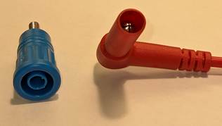 Safety plugs with fixed sheaths should preferably be used. These connectors can only be inserted into a corresponding safety socket. (left photo below)